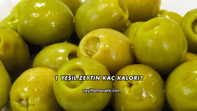 Yaklaşık 10 adet orta boy yeşil zeytin 70 ila 80 kalori arasında değişmektedir. Zeytinin tuz oranı ve yağ içeriği bu değeri etkileyebilir.